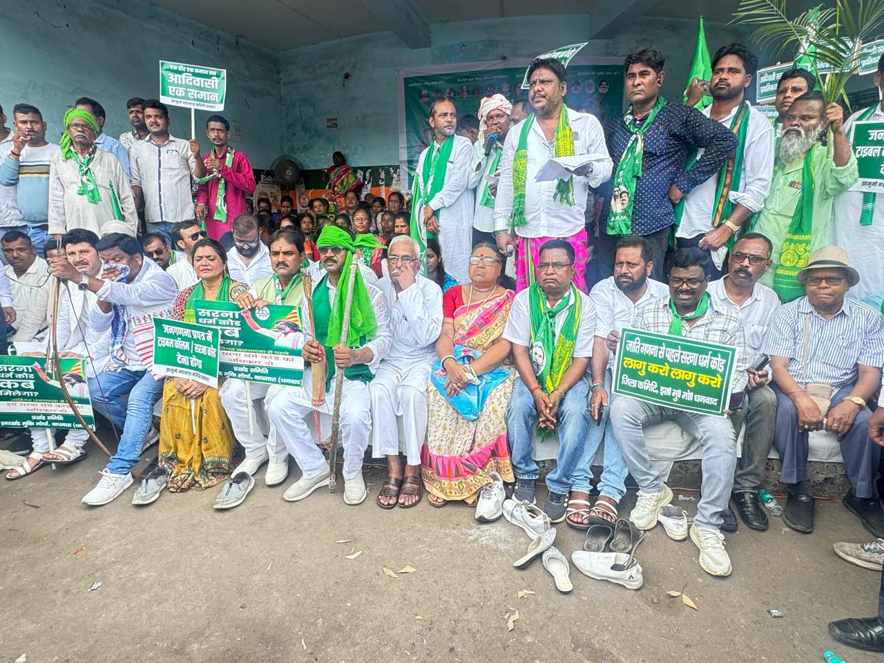 भाजपा नेतृत्व वाली केन्द्र सरकार द्वारा पुरे देश में जातिगत जनगणना करवाने का निर्णय लिया गया है। किन्तु झारखण्ड सरकार द्वारा सरना धर्म कोड/ आदिवासी धर्म कोड विधेयक को झारखण्ड में दिनांक 11 नंवबर 2020 को एक विशेष सत्र आयोजित कर सर्वसम्मति से पारित किया गया था। झारखण्ड विधान सभा से उक्त प्रस्ताव को पारित कर राज्यपाल के माध्यम से केन्द्र के पास अनुमोदन के लिए भेजा गया किन्तुआज लगभग 05 वर्ष उपरान्त भी सरना/अदिवासी अस्मिता और पहचान से जुडे इस विधेयक पर केन्द्र सरकार द्वारा कोई निर्णय नही लिया गया। केन्द्र सरकार की यह चिर निंद्रा दर्शाती है कि आदिवासी समुदाय के प्रति भाजपा की क्या मानसिकता है। देश के 12 करोड़ आदिवासियों के लिए सरना धर्म कोड मान्य हो तभी झारखंड में जातीय जनगणना कराई जाय नहीं तो झामुमों इसका विरोध करती रहेगी। इससे पहले श्री टूडू सक्ति चौक स्थित शहीद शक्ति नाथ महतो की विशालकाय प्रतिमा पर पुष्प अर्पित कर नमन करते हुए गाड़ियों की काफ़िला से सभा स्थल तक पहुंचे। इस विरोध सह धरना कार्यक्रम में जिले के सभी नेता अपने नेतृत्व में हजारों कार्यकर्ताओं के साथ शामिल हुए।