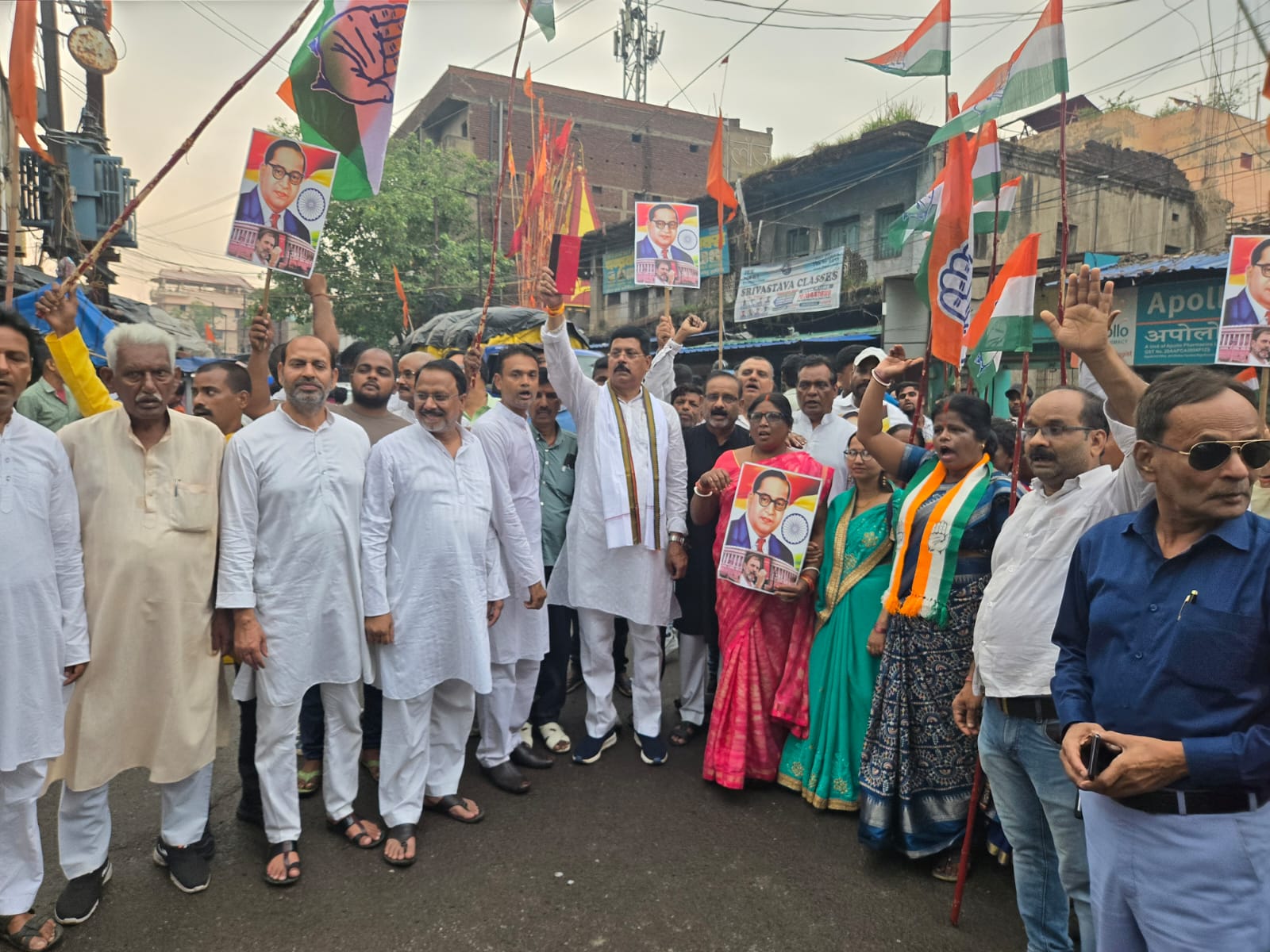 धनबाद।दिनांक 6/6/25 को पूर्वाह्न 4:00 से नेहरू पार्क झरिया कतरास मोड से संविधान बचाओ रैली निकालकर पुरे झरीया शहर भ्रमण किया। संविधान बचाओ
