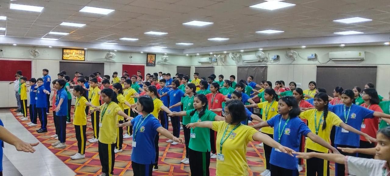 छात्रों ने ताड़ासन, कटिचक्रासन, त्रिकोणासन, उर्ध्वहस्ततोतानासन, सूर्य नमस्कार, वृक्षासन जैसे विभिन्न आसन किए, इसके बाद भ्रामरी और ध्यान किया।