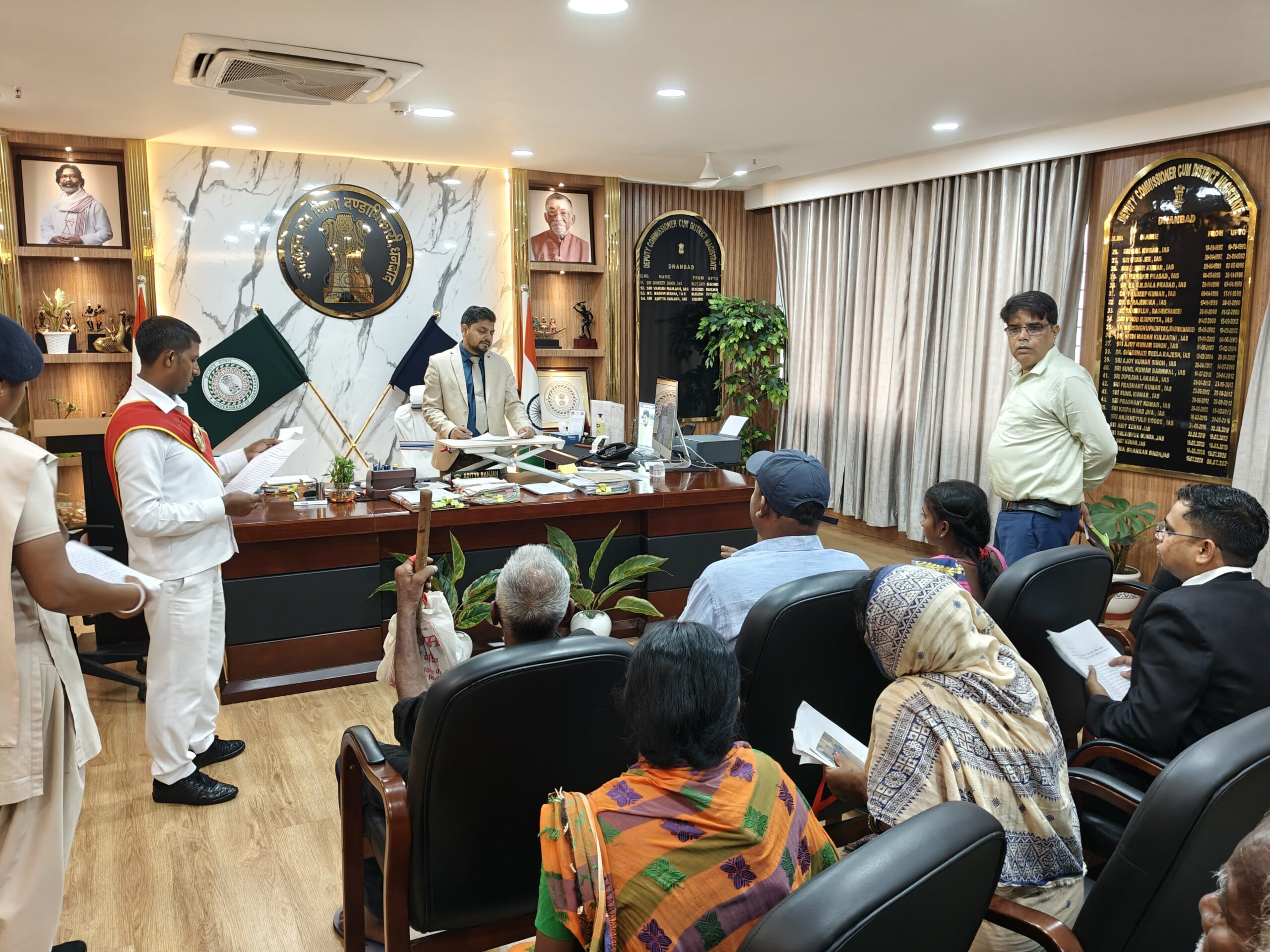 धनबाद।दिनांक 04 जुलाई 2025 को उपायुक्त सह जिला दंडाधिकारी श्री आदित्य रंजन ने समाहरणालय स्थित कार्यालय कक्ष में जिले के विभिन्न क्षेत्र से आए लोगों की शिकायतों को सुना। लोगों के आवेदनों को प्राप्त कर उन्होंने संबंधित पदाधिकारी को शिकायत का निष्पादन करने के लिए निर्देशित किया।जनता दरबार में तालाब मरम्मती कराने, बीमा एजेंट द्वारा गलत जानकारी देने, अबुवा आवास, प्रधनमंत्री आवास निर्माण कराने, मुआवजा राशि, दुर्घटना बीमा देने, आर्म्स लाइसेंस, राशन कार्ड में नाम जुड़वाने, कार्य करने के बाद भुगतान नही करने के संबंध में, मिनी थिएटर के लाइसेंस निर्गत करने, पारिवारिक लाभ दिलाने, जाति, आवासीय, एवं आय प्रमाण बनाने, बंद खाता को चालू करने, आंगनवाड़ी सहायिका पद पर चयन करने, पोषण सखी के मानदेय भुगतान करने समेत कई विभिन्न आवेदन प्राप्त हुए।