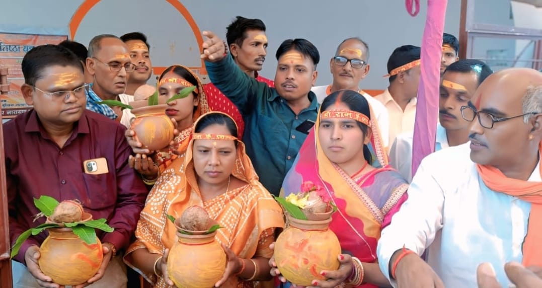 नावाडीह प्रखंड अंतर्गत नारायणपुर पंचायत के कुम्हारटोला में श्री श्री मां मनसा प्राण प्रतिष्ठा महायज्ञ को लेकर शनिवार को भव्य कलश यात्रा निकाली गई।बता दें कि नव निर्मित मां मनसा मंदिर के प्राण प्रतिष्ठा को लेकर पूरे क्षेत्र में भक्तिमय वातावरण बना हुआ है।प्राण प्रतिष्ठा में 101 कन्याओं एवं महिलाओं द्वारा भव्य कलश यात्रा निकाली गई ।जिसमें अगल बगल के कई गांवों के कन्याओं व महिलाओं ने जल यात्रा में भाग लिया।इस अवसर पर बड़ी संख्या में महिलाओं,कन्याओं और पुरुषों द्वारा नेक नियम के साथ मंदिर के पूजा में भाग लेकर गाजे बजे के साथ नारायणपुर के छोटकी नदी घाट पहुंचकर कलश में जल लेकर विधिवत पंडितों द्वारा मंत्रोचारण के साथ मां मनसा मंदिर प्रांगण पहुंचे। तीन दिनों तक चलने वाले इस अनुष्ठान के दौरान चंडी पाठ पूजा अर्चना के साथ साथ रात्रि में मनसा मंगल भजन कीर्तन का कार्यक्रम किया जाएगा। इस मौके पर आजसू नेत्री यशोदा देवी,मुखिया जयंती देवी,भेखलाल महतो, प्रयाग महतो, जानकी महतो,उमेश्वर प्रजापति,रीतलाल प्रजापति,समेत सैंकड़ों श्रद्धालु कलश यात्रा कार्यक्रम में शामिल थे।